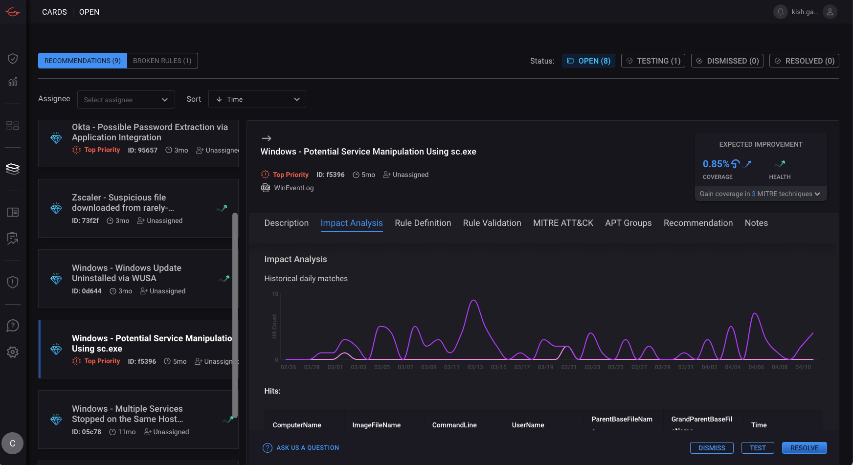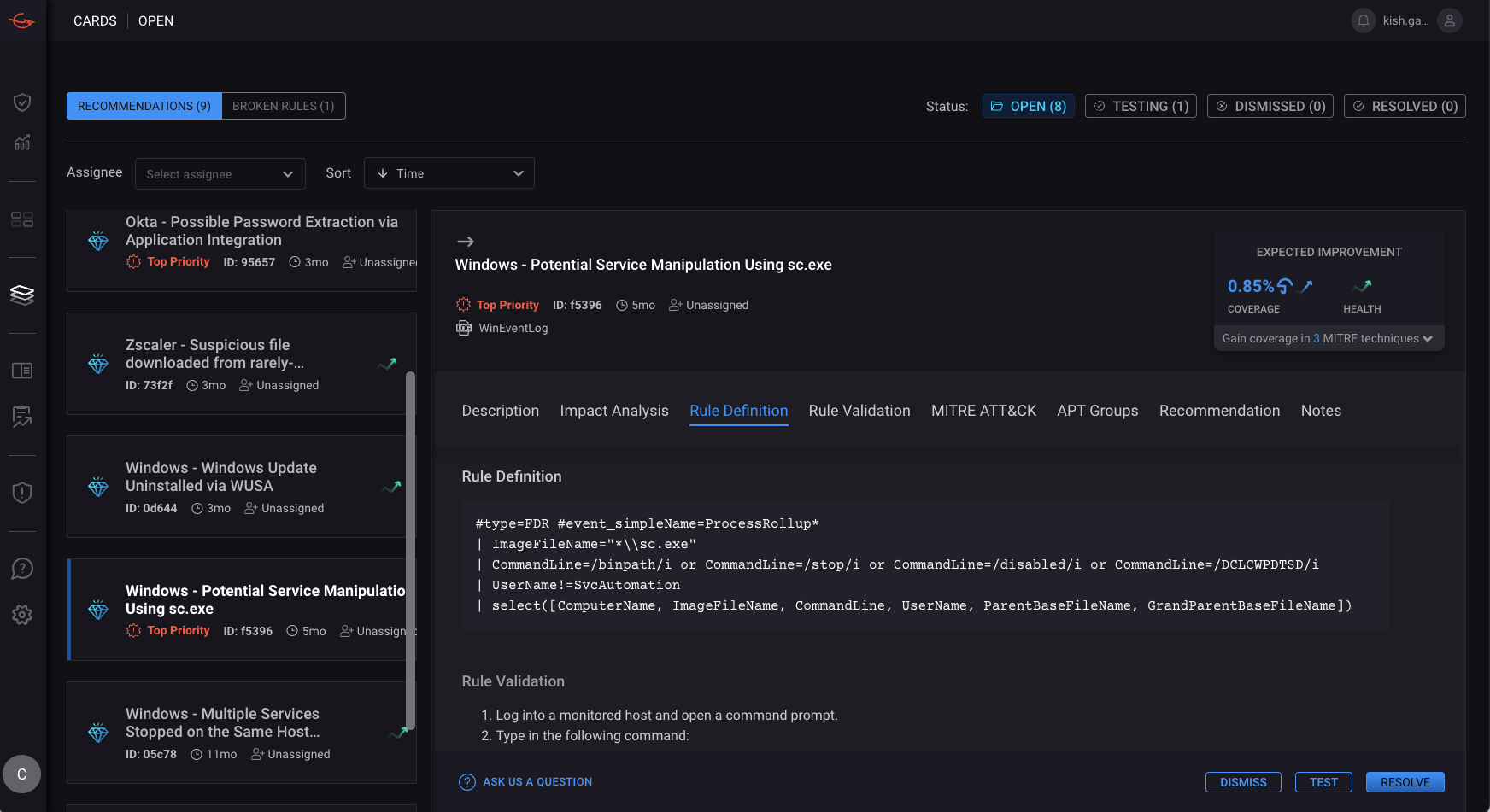 The CardinalOps platform uses specialized analytics to continuously assess all your rules to ensure they have the required prerequisites to execute . It doesn't just identify issues with broken rules, it also provides recommendations and remediation steps that you can review, test and deploy into your SIEM.
