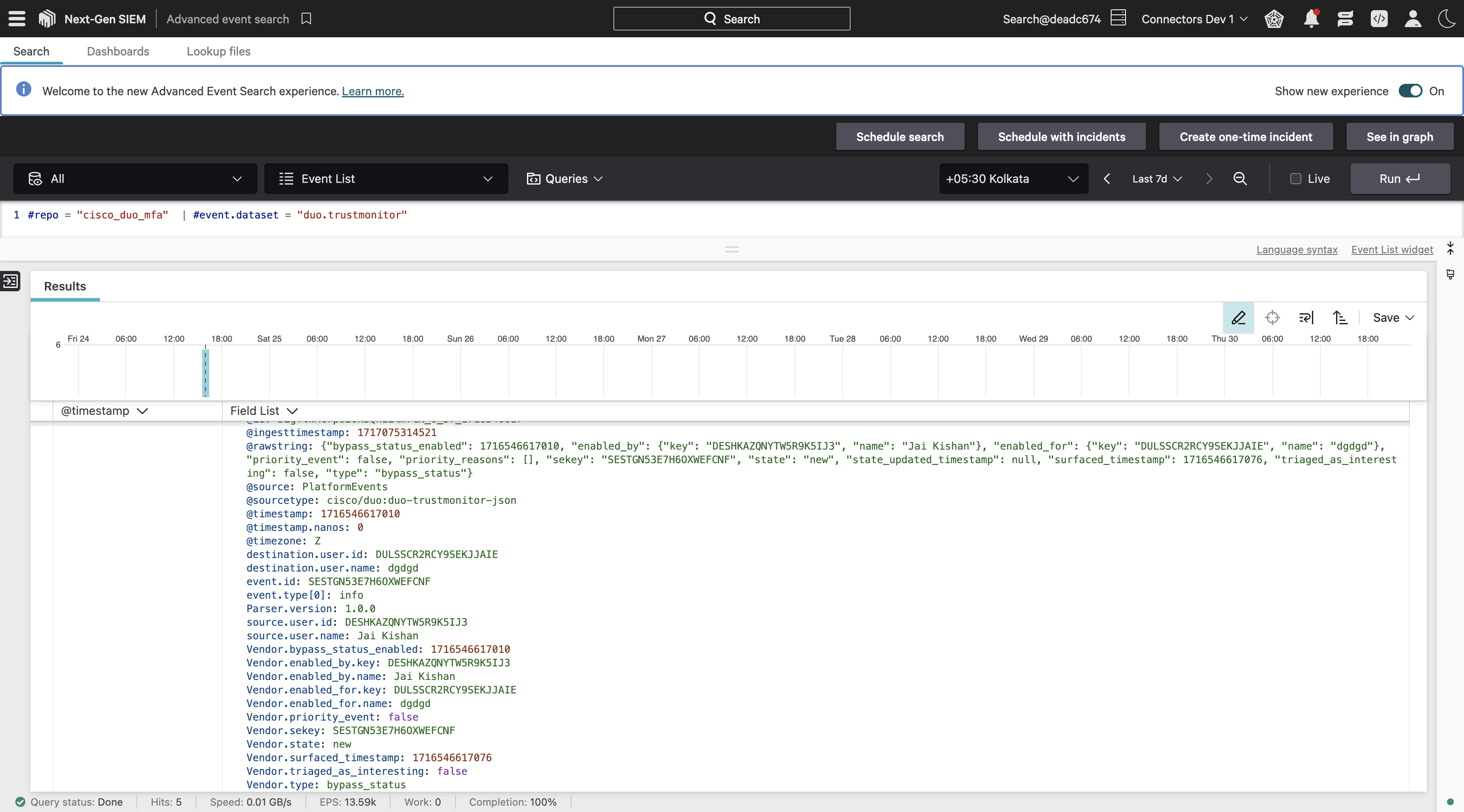 Secure access proactively and gain unified visibility by easily ingesting Cisco Duo MFA logs including authentication, administrative, activity and telephony logs; and Cisco Duo MFA Security Events into the CrowdStrike Falcon® platform. By centralizing and correlating logs and security events from Cisco Duo MFA, CrowdStrike, and additional third parties within CrowdStrike Falcon® Next-Gen SIEM, your team gains enhanced vulnerability detection, streamlined incident response, and an optimized security posture to ultimately protect against evolving cyber threats.