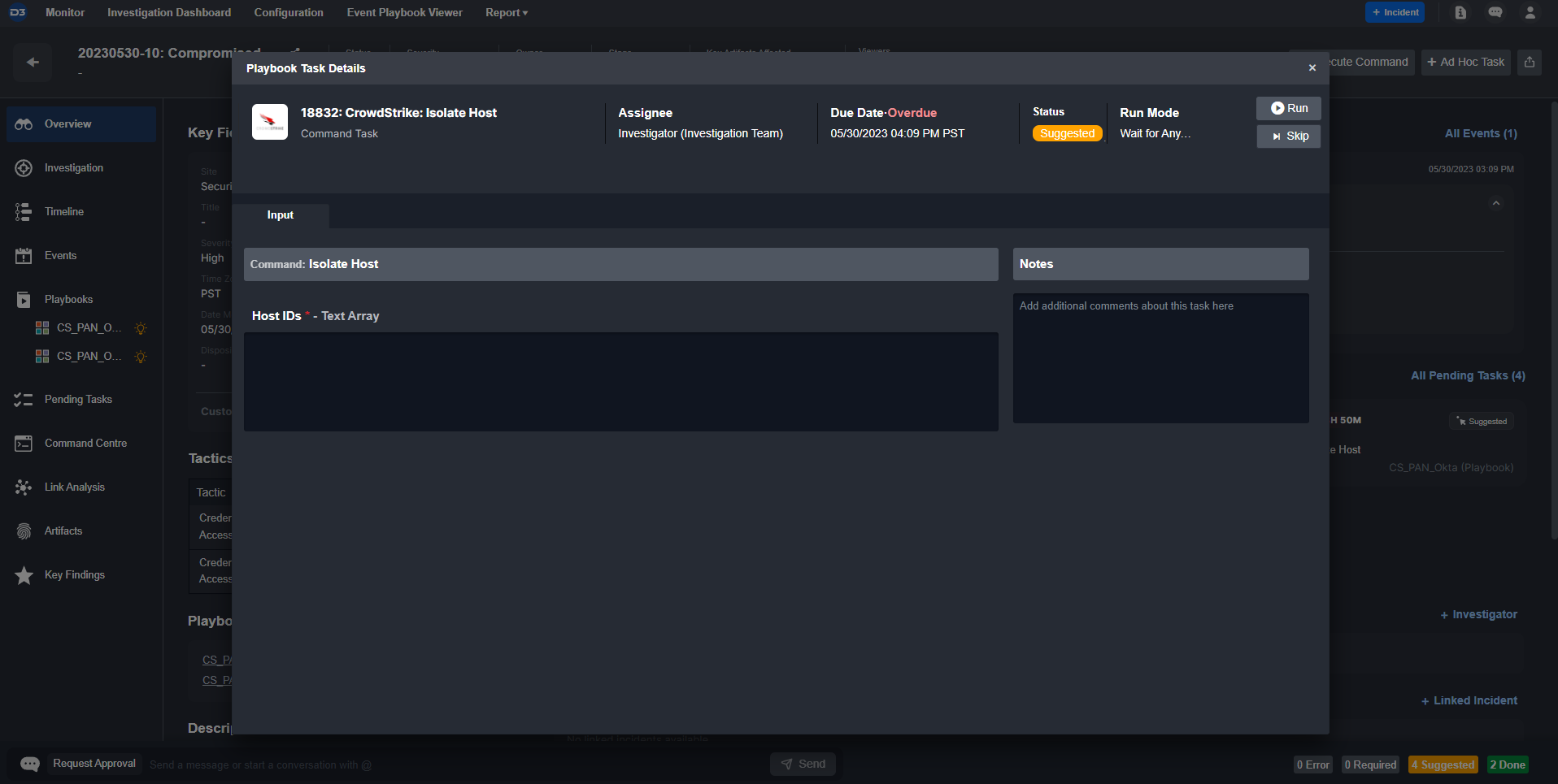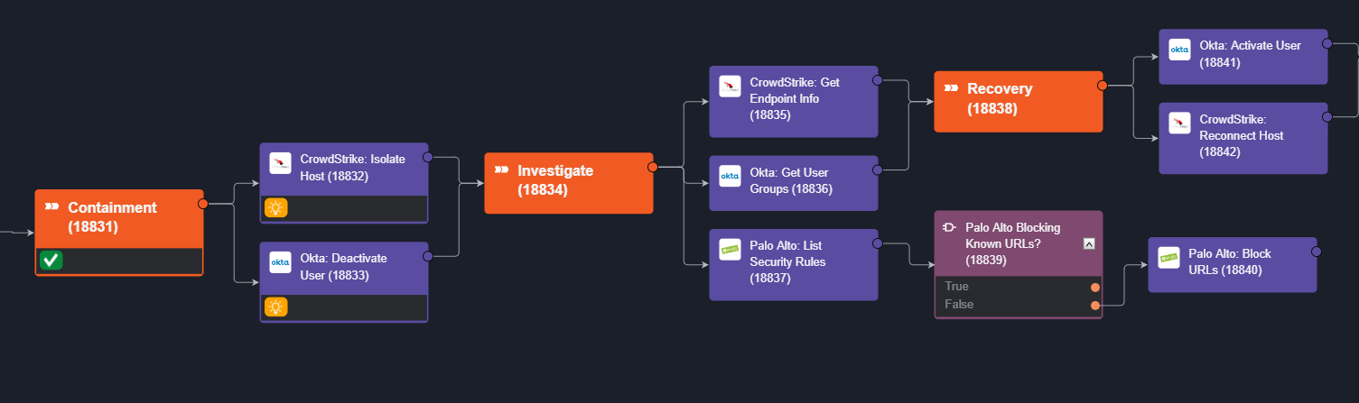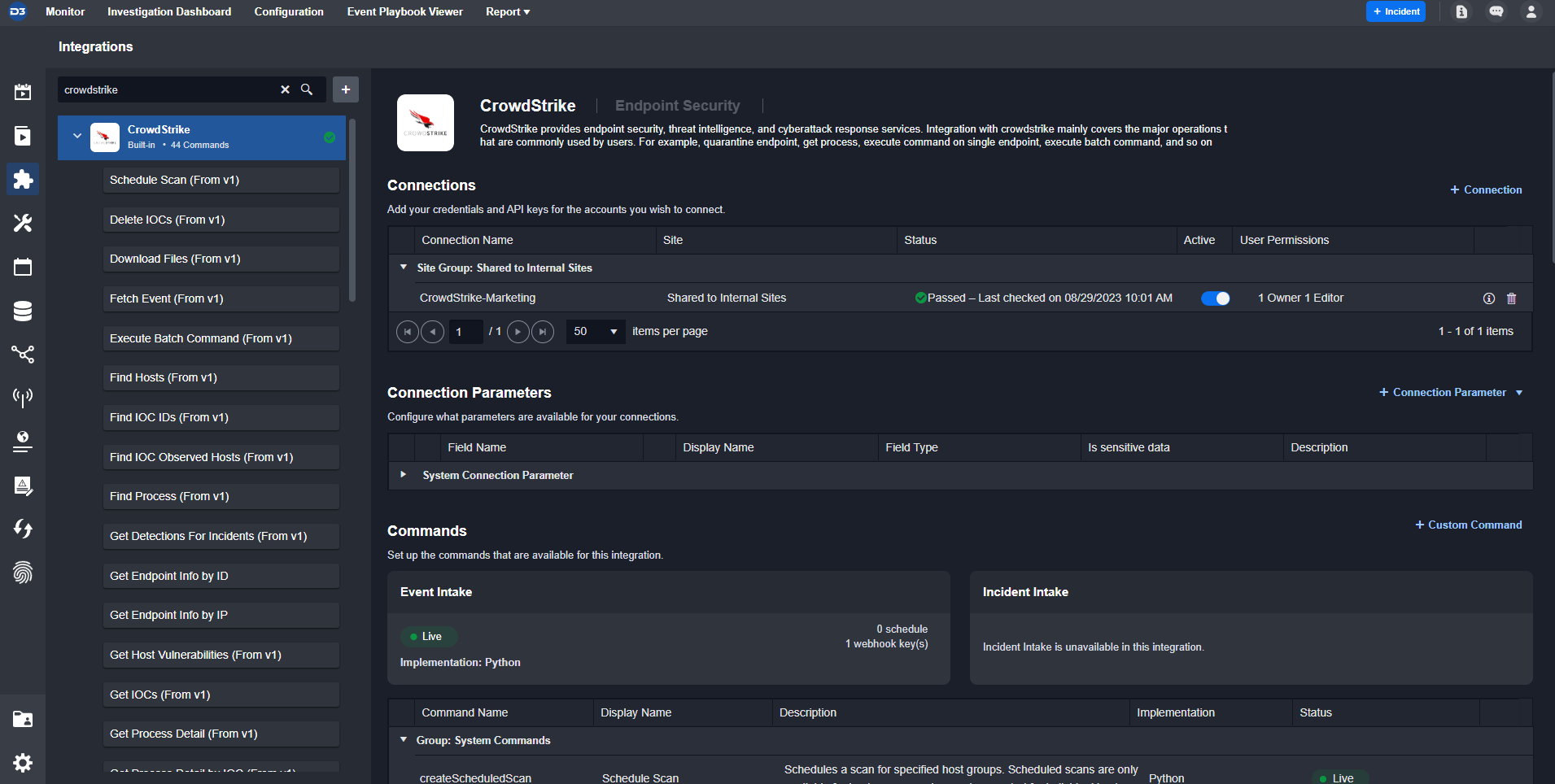 D3 Security integrates with the CrowdStrike Falcon® platform to accelerate security operations and investigations using powerful enrichment, orchestration and automation. Seamlessly connect to your existing CrowdStrike instance within Smart SOAR and enable immediate Falcon response actions using automated playbooks. With unique CrowdStrike and D3 playbooks, your team gains automated alert triage, data enrichment, incident correlation containment, recovery, reporting, and more to dramatically accelerate operations.