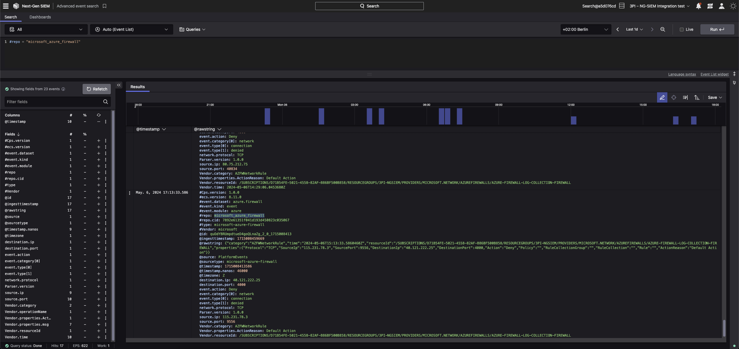 Speed up response with detailed timelines of events and actionable forensic data from Microsoft Azure Firewall logs, such as misconfigurations and Distributed Denial of Service (DDoS) attacks, using built-in search and filtering capabilities from Falcon Next-Gen SIEM