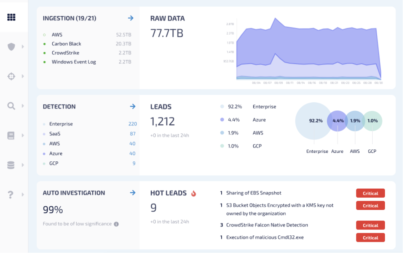 Hunters SOC Platform can replace your SIEM by delivering data ingestion, built-in and always up-to-date threat detection, and automated correlation and investigation to reduce risk, cost and complexity for SOC teams. Connect Hunters‘s unique detection capabilities with the CrowdStrike Falcon® platform‘s rich security data, such as running processes, network connections and file creations, and other data sources to attain full attack insight for faster response times.