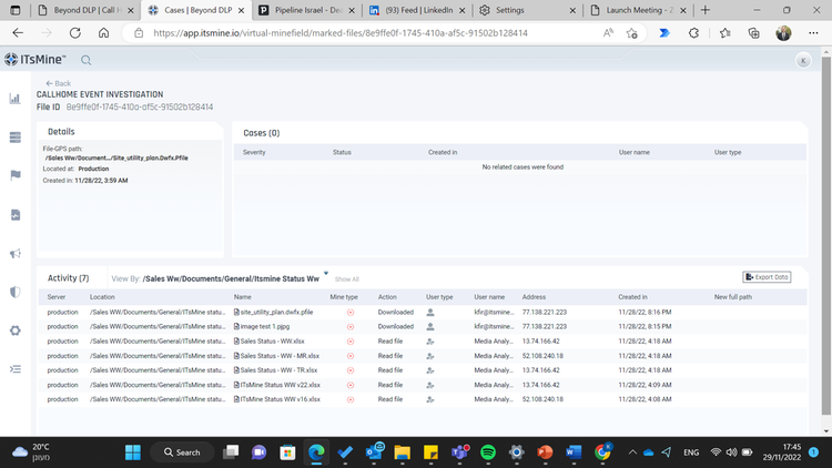 ITsMine provides a consolidated view into data access and actions across your organization. By integrating ITsMine with the CrowdStrike Falcon® platform, you can seamlessly detect and protect against breaches, ransomware attacks, and insider threats. ITsMine provides unique SoftwareMines that imitate files lying within your file storages to enhance the detection of elusive threats. If there are potentially malicious users accessing your data, ITsMine will immediately alert Falcon to then automatically contain the network for faster, more effective response. In addition, by using a method similar to anti-phishing campaigns, ITsMine provides intuitive awareness training based on rich CrowdStrike endpoint data to positively influence user behavior as it continually reinforces data security best practices.