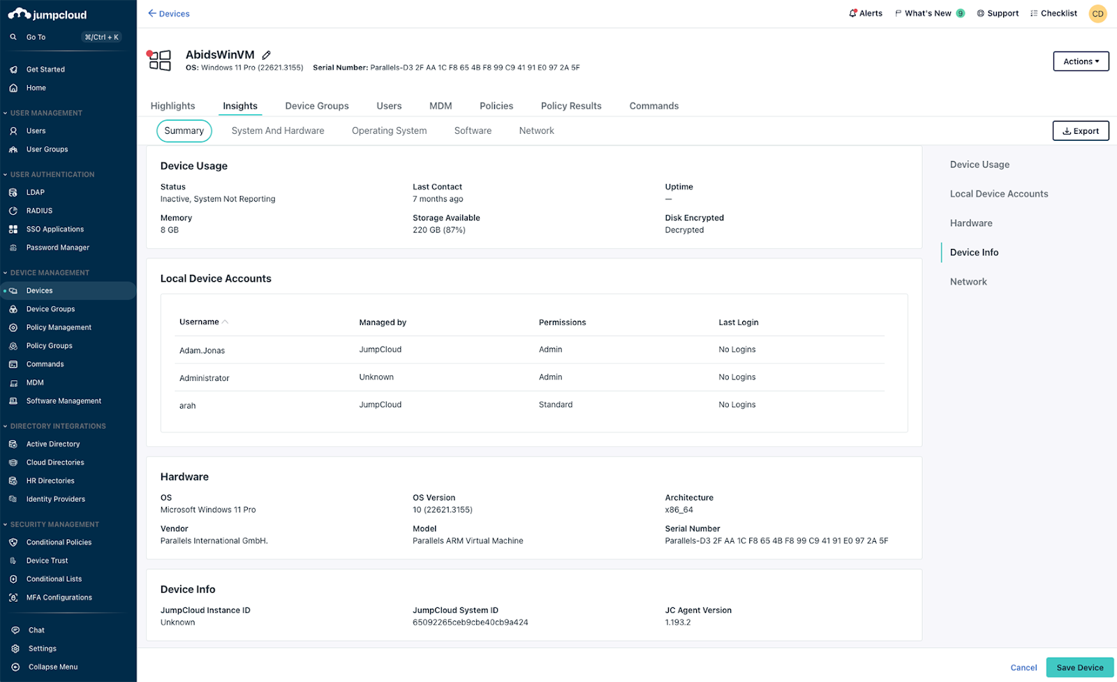 Manage and secure your entire fleet of Windows, MacOS, Linux, Android, iOS and iPadOS devices with JumpCloud. Apply granular policies, patch vulnerabilities, troubleshoot remotely, and enforce device trust access all from the same platform - Zero-Trust made easy