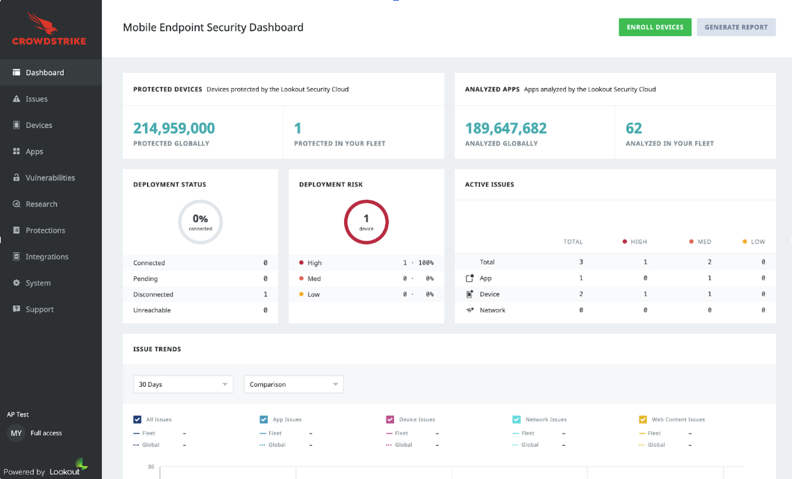 Lookout Mobile Endpoint Security (MES) is powered by telemetry across mobile apps, devices, and web items to detect mobile compromise and phishing attacks.