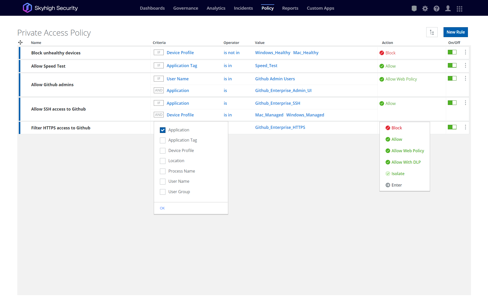 Skyhigh Security‘s Private Access solution provides secure, yet seamless, access to your most critical and sensitive private applications. Skyhigh Security integrates with the CrowdStrike Falcon® platform by applying CrowdStrike Zero Trust Assessment (ZTA) risk scores to its robust Zero Trust policy enforcement, boosting security posture and further securing unauthorized access to private applications. By ensuring that only trusted, healthy devices are permitted to access sensitive, private applications in your organization‘s environment, you gain dynamic threat protection to stay ahead of modern threats.