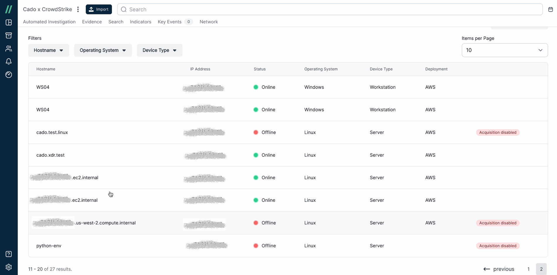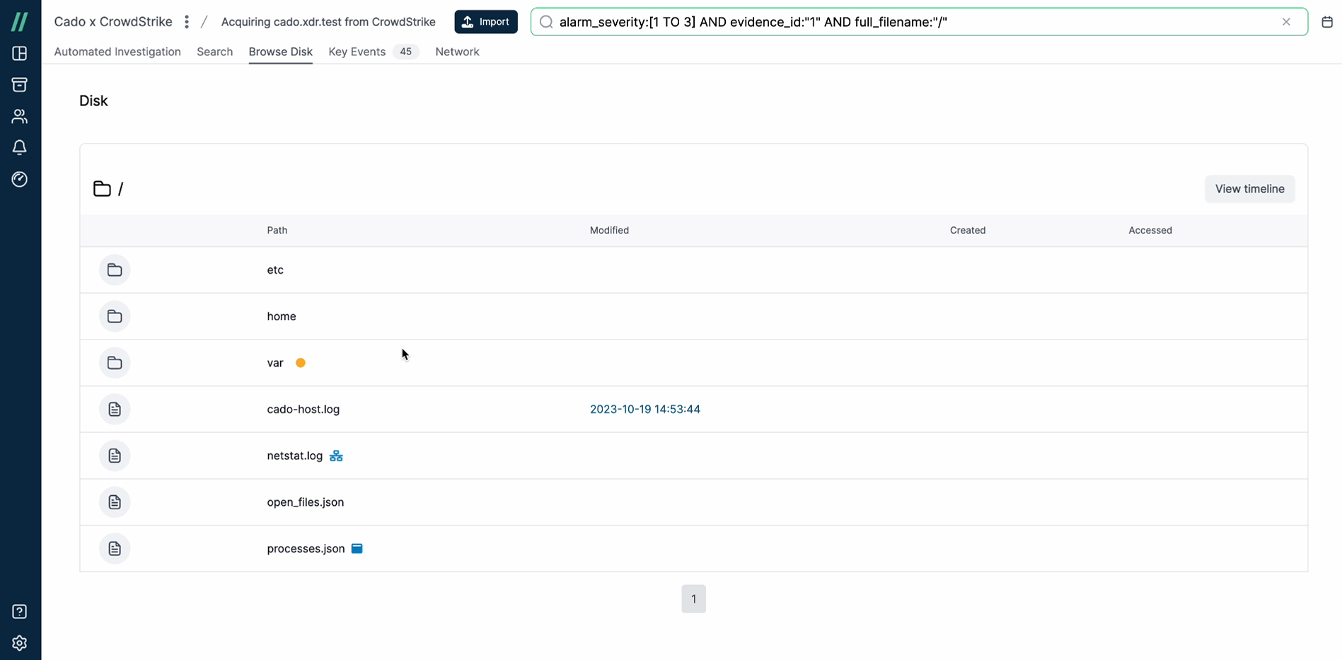 Cado Security‘s platform integrates with the CrowdStrike Falcon® platform to empower security teams to seamlessly perform forensics investigations across deployed systems, minimizing response times. Once malicious activity is detected by the Falcon platform, the Cado platform leverages CrowdStrike Real Time Response (RTR) capabilities to automatically collect and analyze forensic data from impacted systems, helping security teams quickly understand the root cause and impact of an incident.