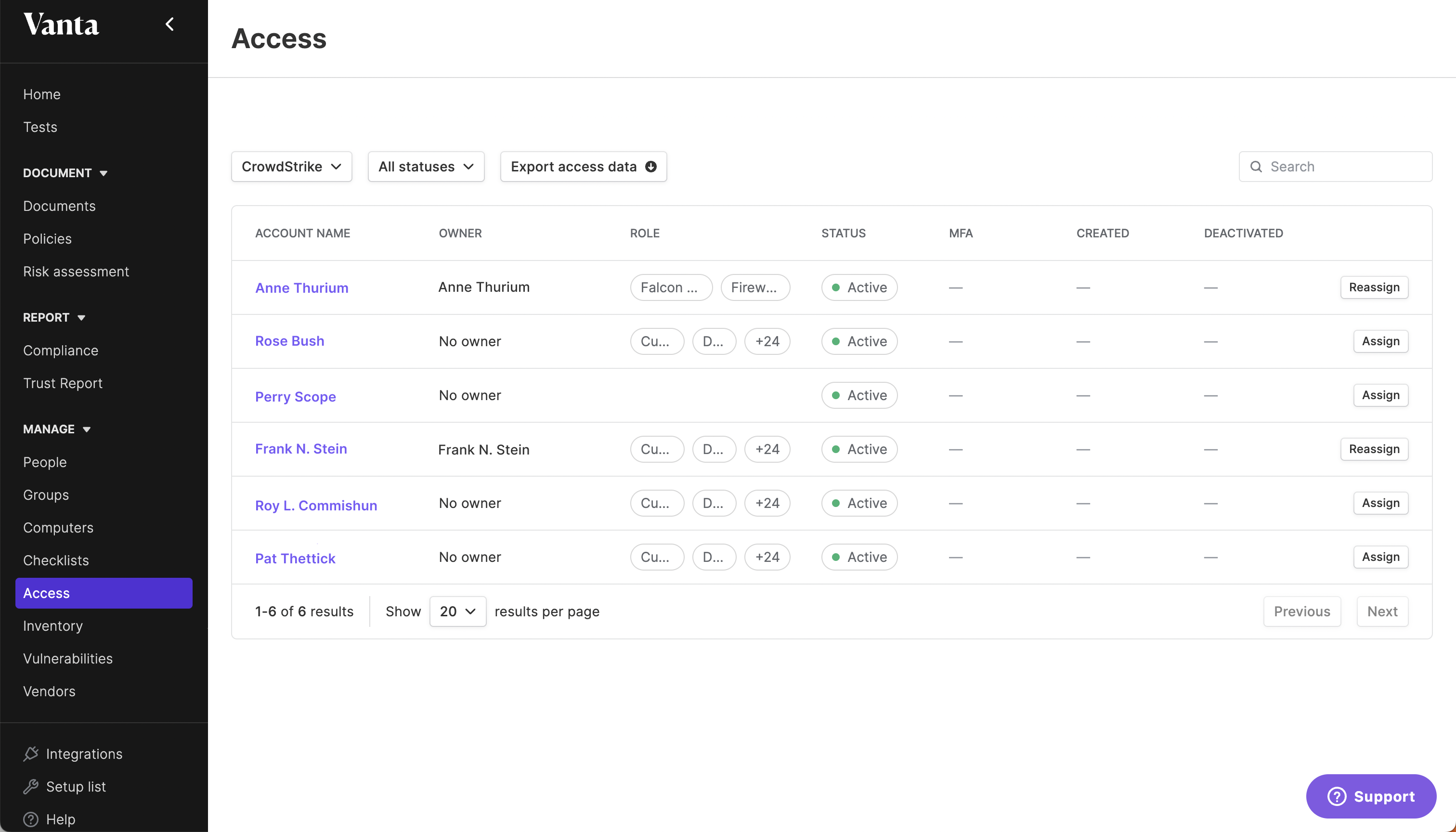 Run tests to ensure that Falcon users have been linked with users in Vanta, and ensure those users are removed from the Falcon platform when offboarded