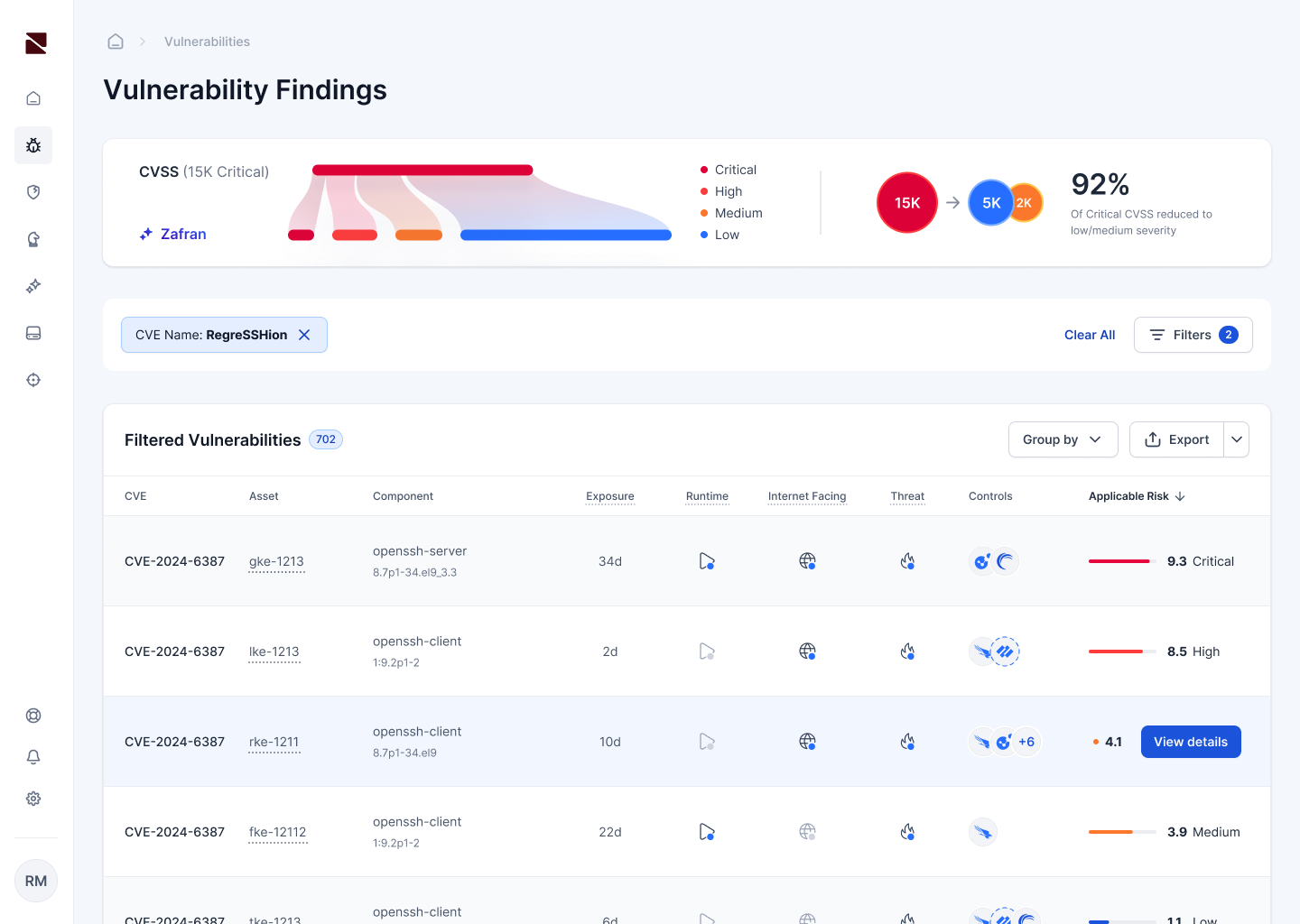 Prioritize and fix what is truly exploitable using risk context from your existing security tools, including runtime presence, internet reachability, threat group activity, and the impact of your compensating controls - Automated response workflows