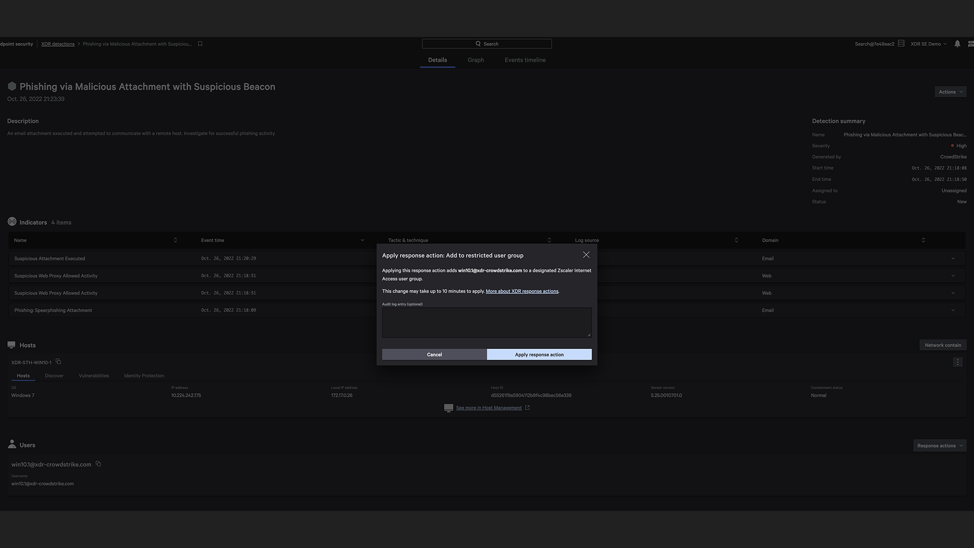 Easily trigger direct response actions in ZIA based on threat detections or suspicious activity found within Falcon Insight XDR to extend and speed up response - Control access to critical information